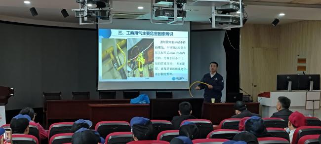 為進一步加強工商用戶安全用氣意識,提升突發(fā)事故的應急處置能力,有效預防和遏制燃氣安全事故的發(fā)生。3月27日下午,應安慶師范大學基建與后勤管理處邀請,公司燃氣安全培訓講師來到安慶師范大學龍山校區(qū)開展燃氣安全培訓。校內工商燃氣用戶、學校后勤處管理人員約50人參加培訓。