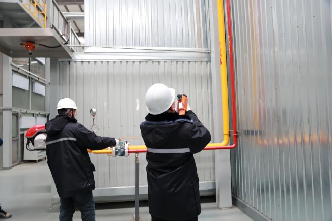 在生產(chǎn)車(chē)間內(nèi),服務(wù)組通過(guò)紅外測(cè)漏儀等探漏設(shè)備對(duì)管道運(yùn)行情況進(jìn)行細(xì)致檢查,逐一查看壓力表和燃?xì)鈭?bào)警器上的相關(guān)信息,確保每一處生產(chǎn)設(shè)備的燃?xì)馐褂冒踩?。在檢查的同時(shí),服務(wù)組還就廠(chǎng)區(qū)內(nèi)燃?xì)庠O(shè)備設(shè)施的實(shí)際情況,與廠(chǎng)房相關(guān)部門(mén)負(fù)責(zé)人進(jìn)行了現(xiàn)場(chǎng)宣講,并表示,無(wú)論遇到任何用能問(wèn)題,都?xì)g迎隨時(shí)來(lái)電反映,安慶港華將第一時(shí)間上門(mén)提供服務(wù)。